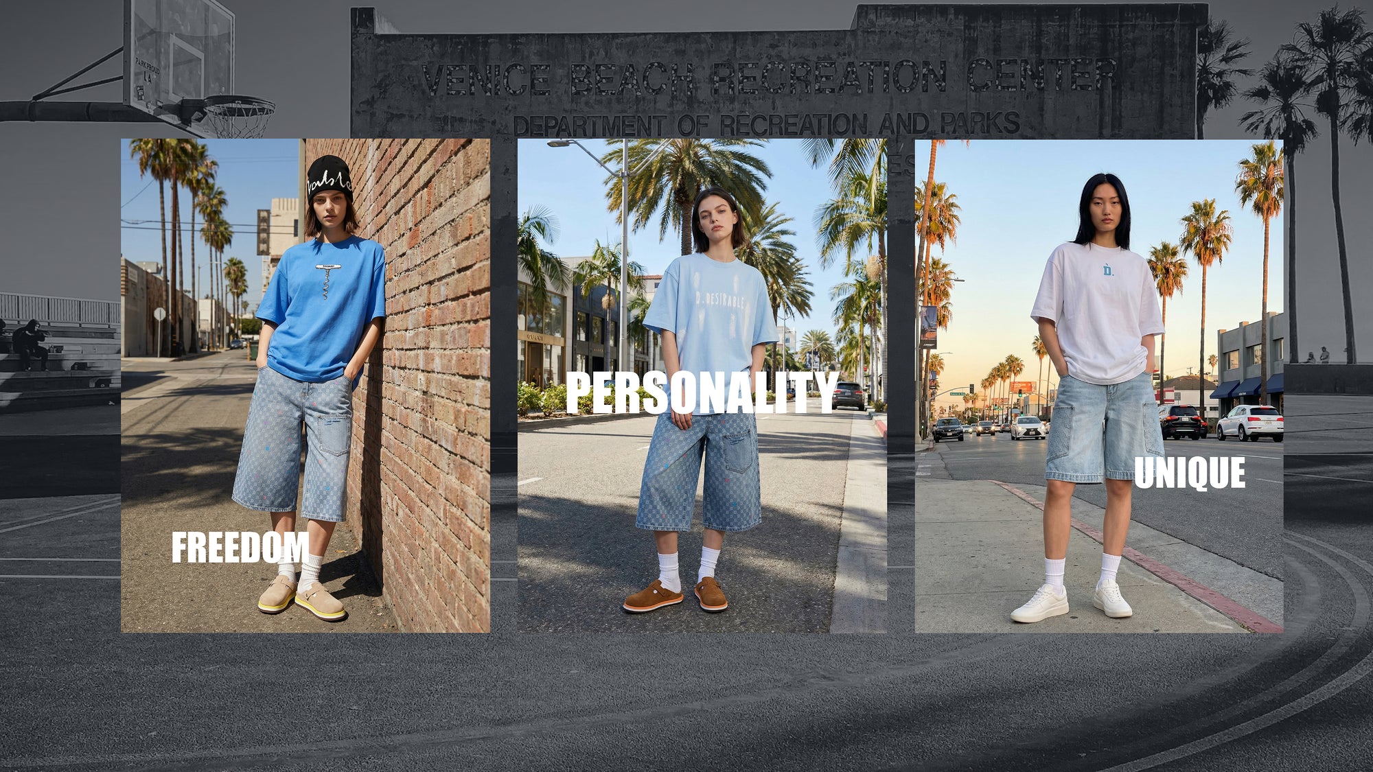 "Seaside hoops with Dylan Wang. Signature smirk, vintage washes, and sea-salt blue. The most enchanting and refreshing combo for Spring."