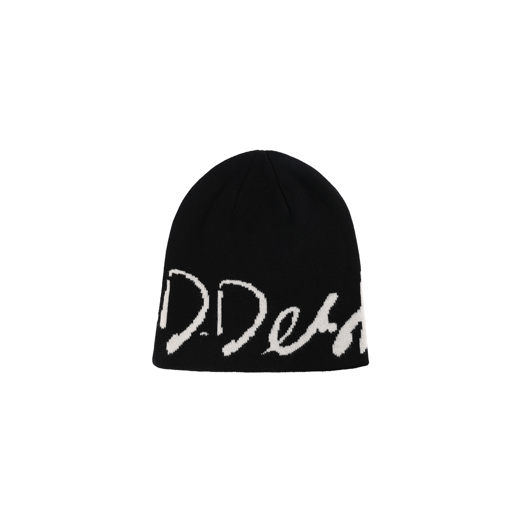 D.DESIRABLE-Oversized Calligraphy Logo Jacquard Beanie Black Cap