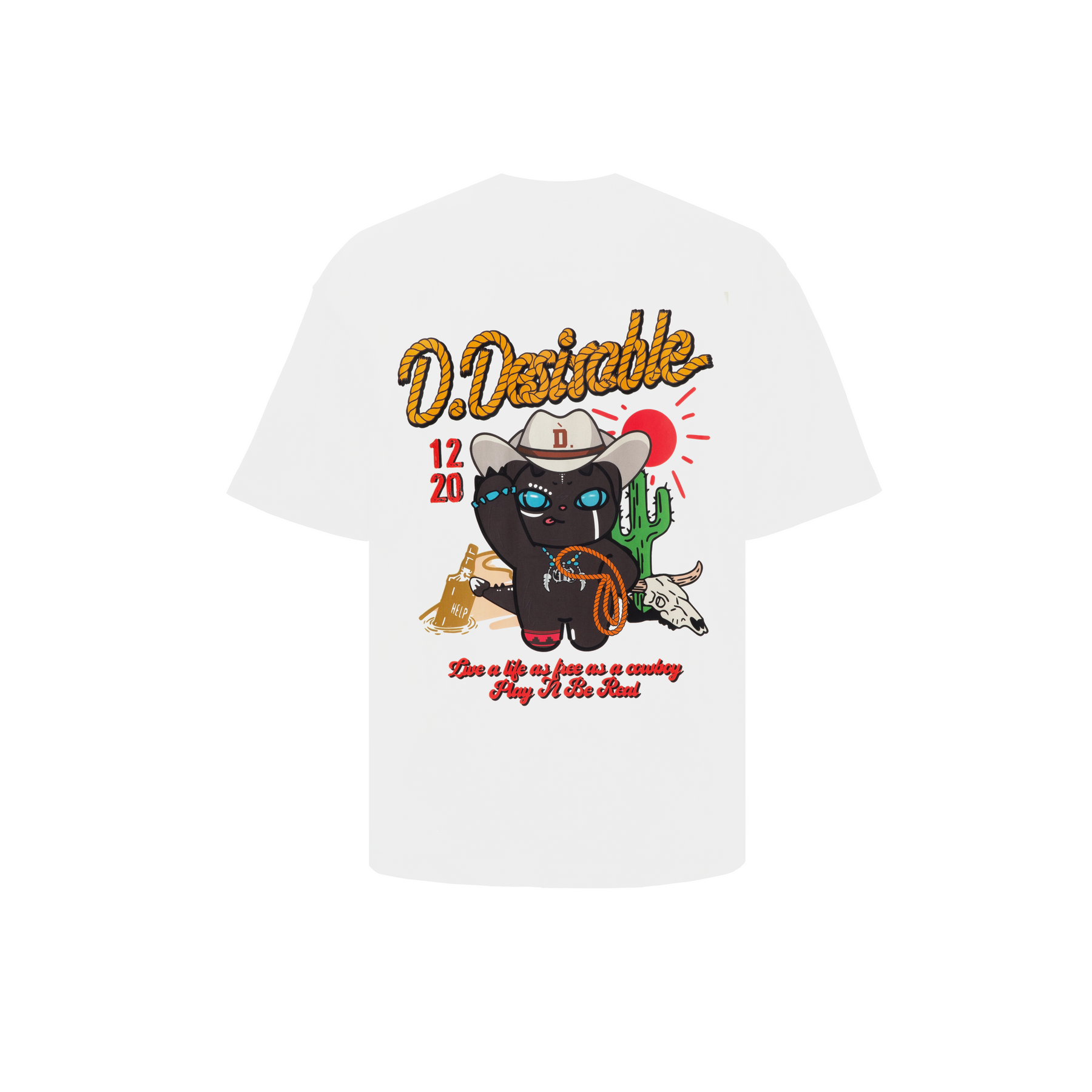 Mischievous Cowboy Little Devil Graphic White T-Shirt - Streetwear Cotton Tee